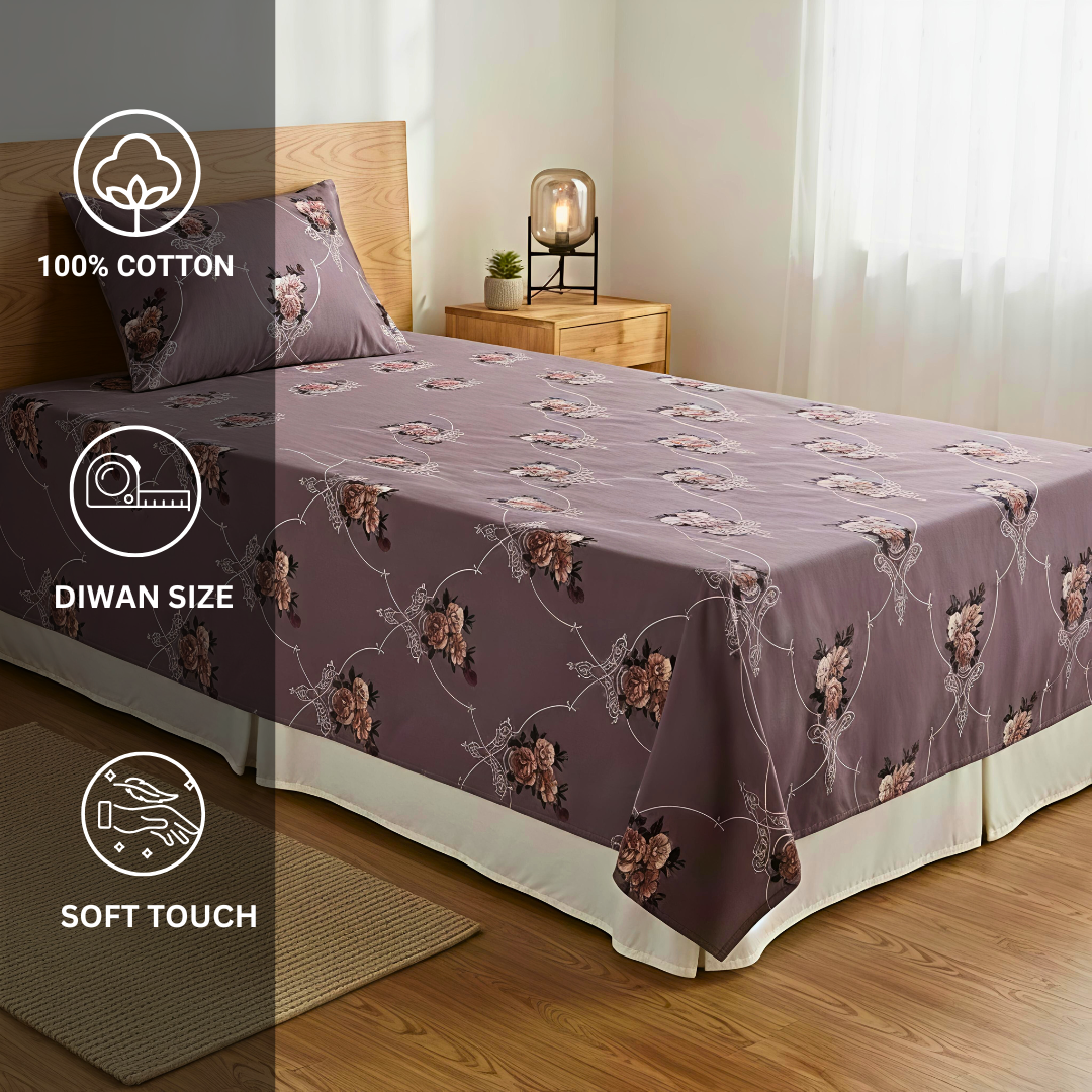 100% Cotton Diwan bedsheet 1 Pair - Floral Chain100% Cotton Diwan bedsheet 1 Pair – Floral Chain