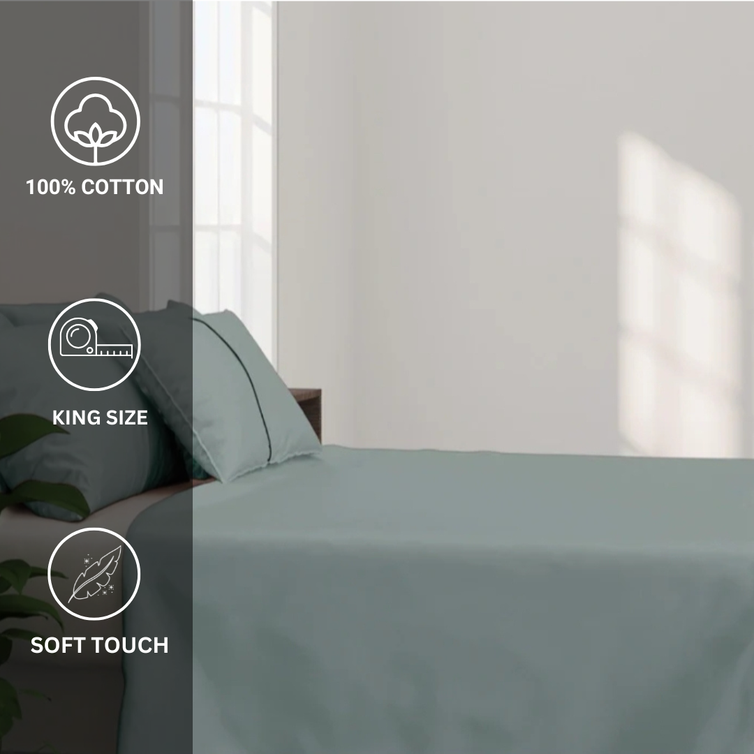 100% Cotton King bedsheet with 2 pillow covers - Greyish Blue100% Cotton King bedsheet with 2 pillow covers – Greyish Blue