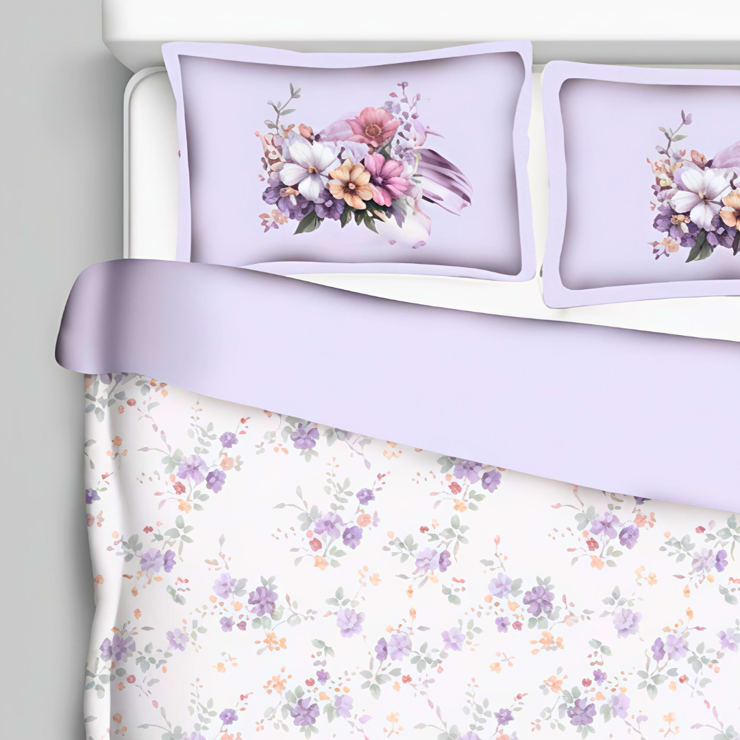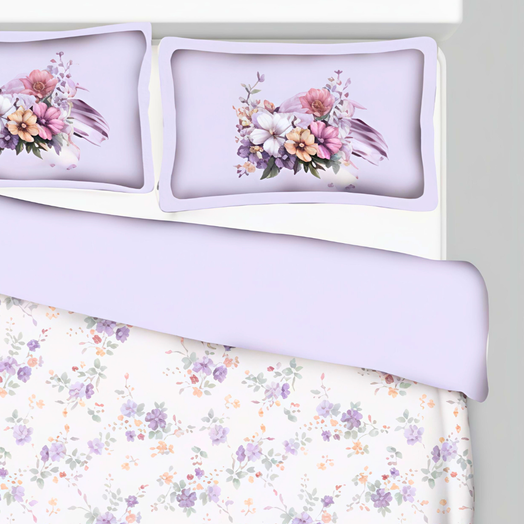 100% Cotton double bedsheet with 2 pillow covers -Lavender Florals