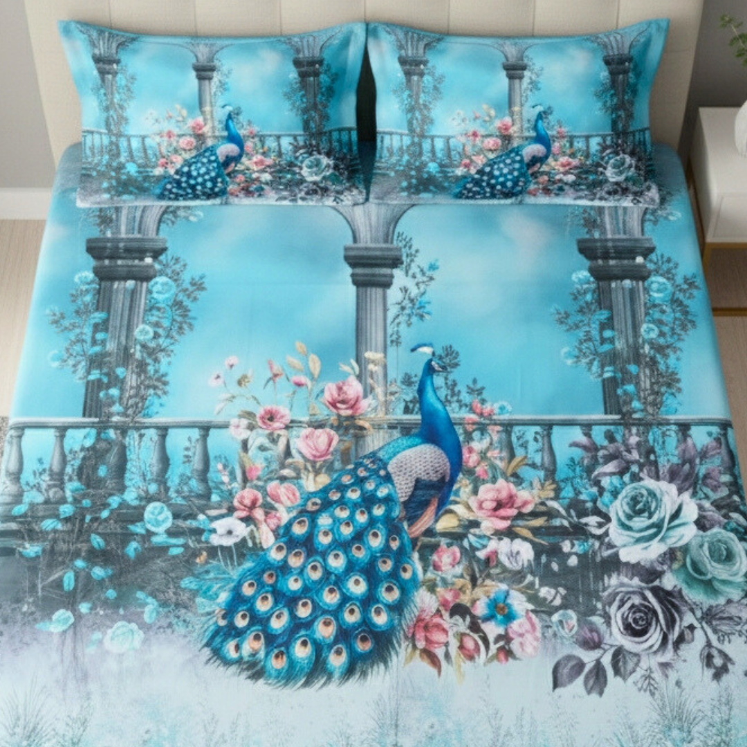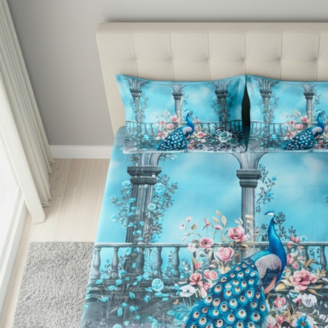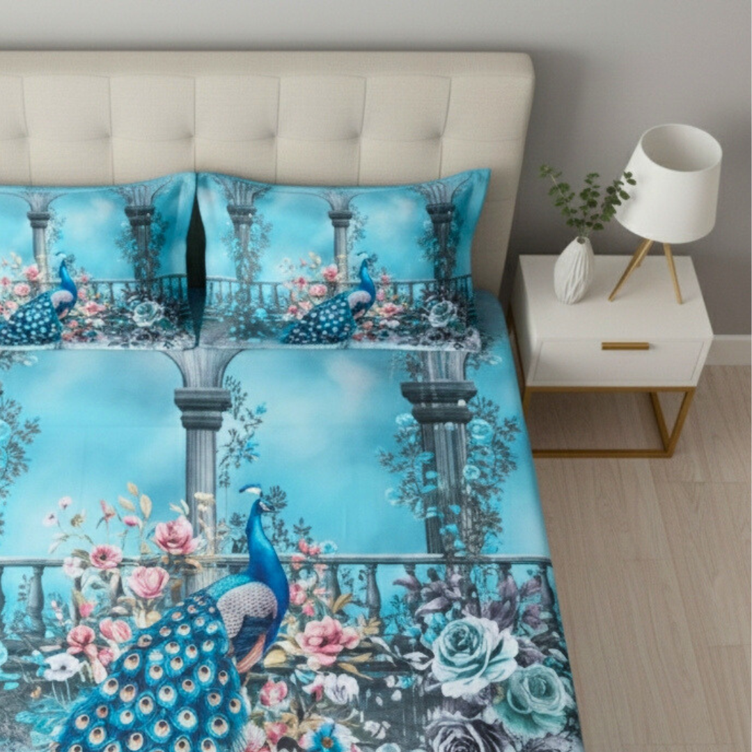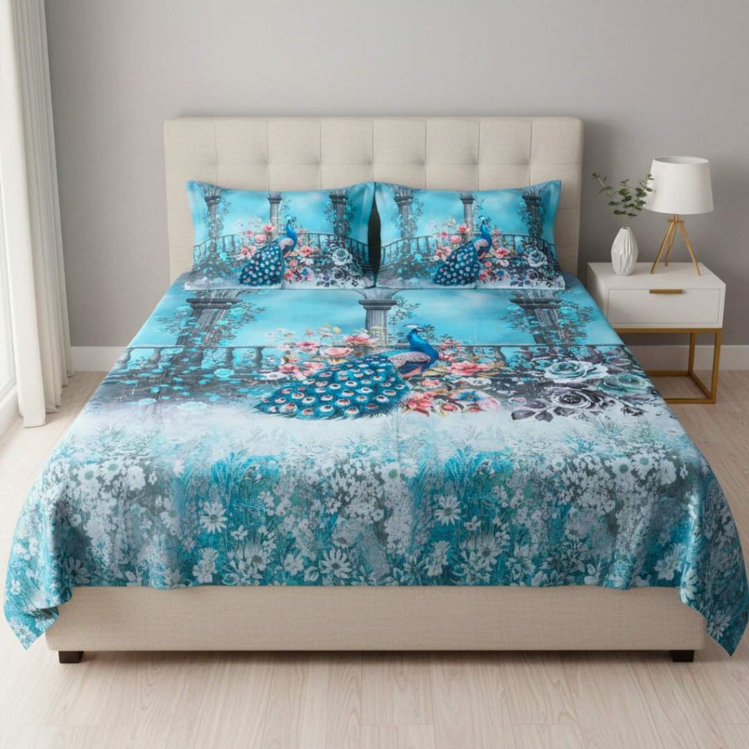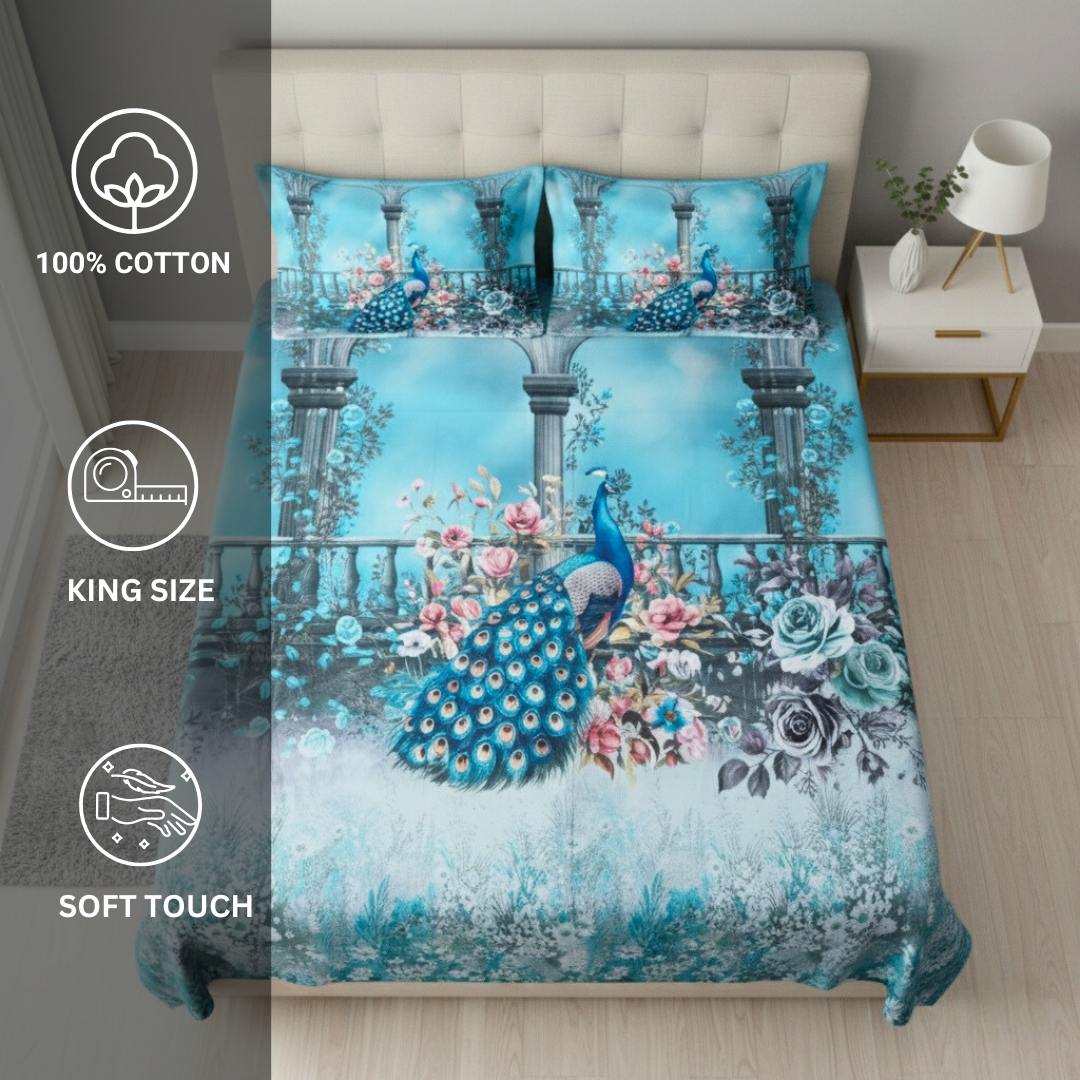 100% Cotton King bedsheet with 2 pillow covers – Majestic Peacock