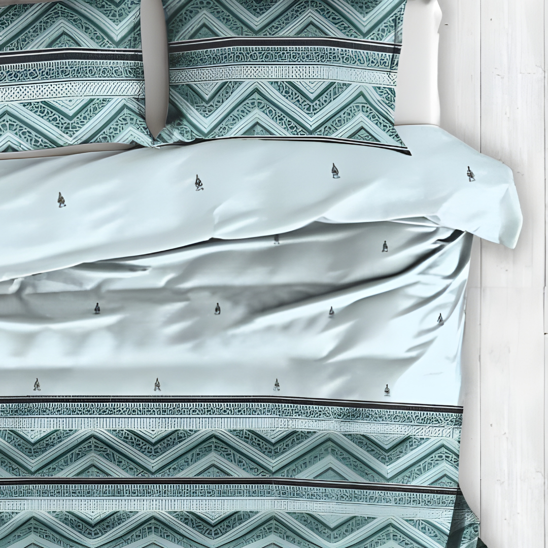 100% Cotton Queen/King Fitted bedsheet with 2 pillow covers - Blue Waves100% Cotton Queen/King Fitted bedsheet with 2 pillow covers – Blue Waves