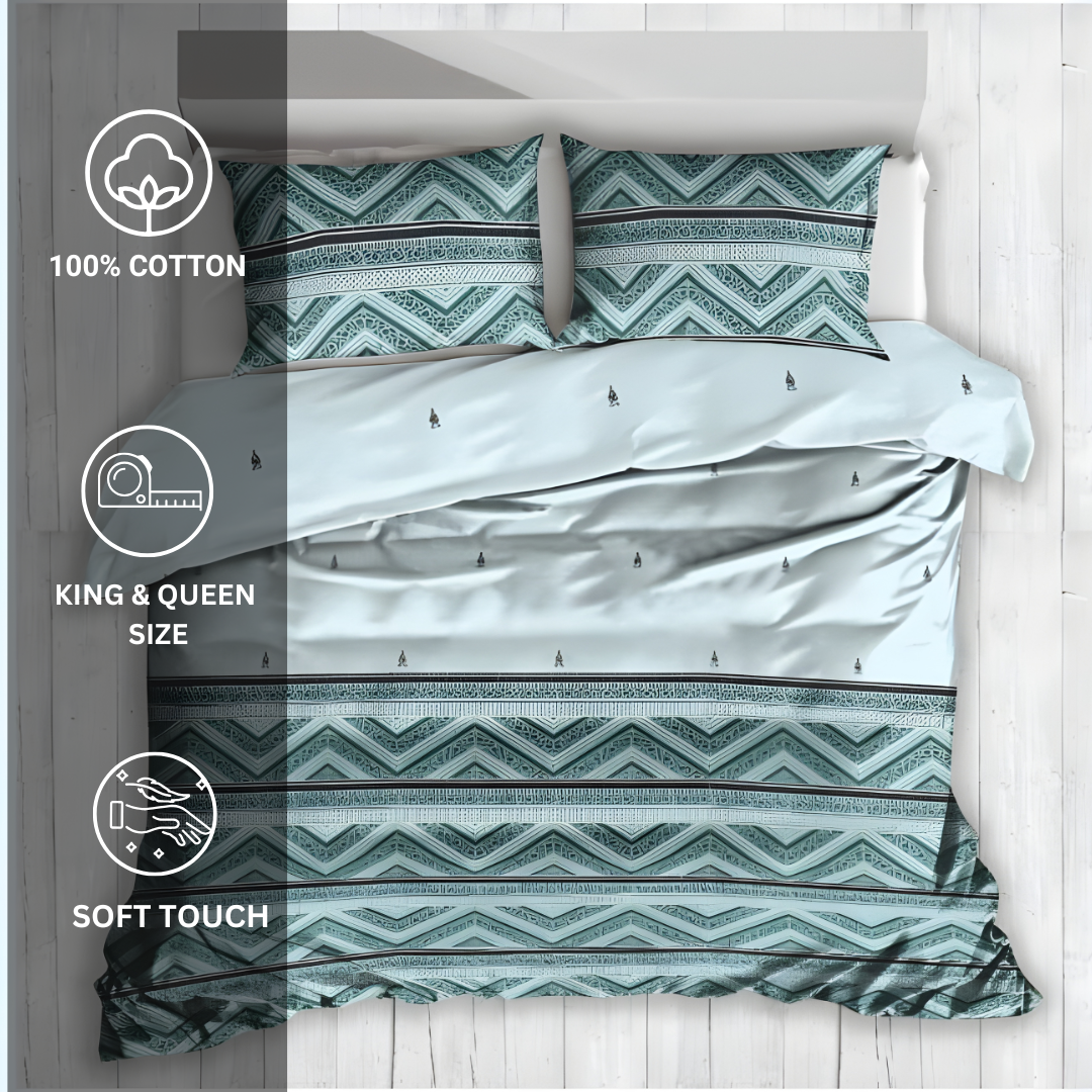100% Cotton King Fitted bedsheet with 2 pillow covers – Blue Waves