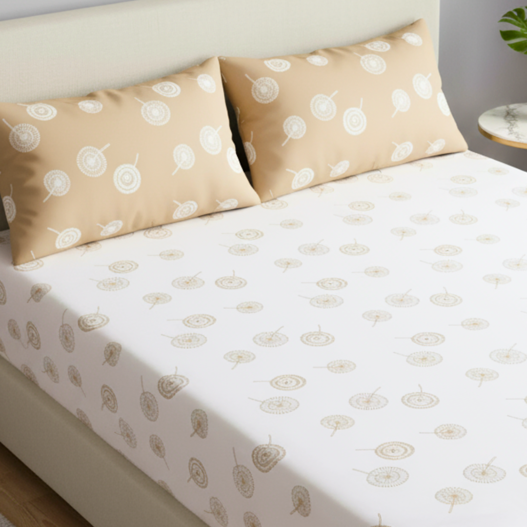 100% Cotton King Fitted bedsheet with 2 pillow covers – Dandelion Dreams