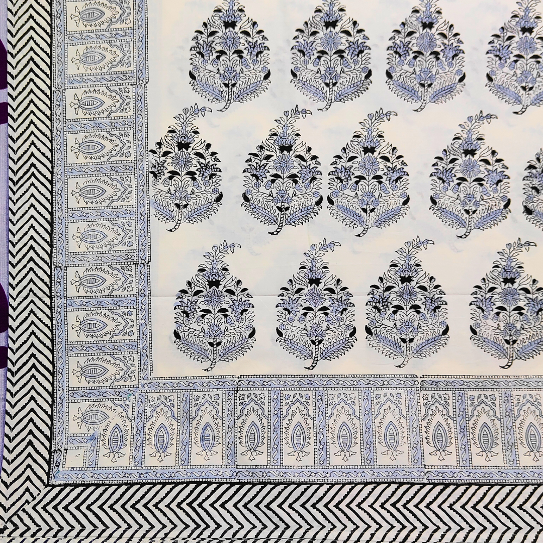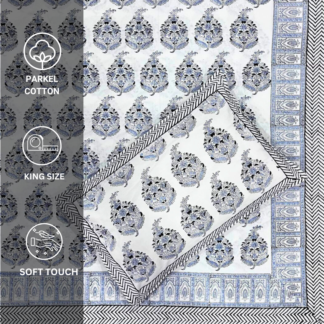Jaipuri Hand Block Print Parkle Cotton King Bedsheet – Floral Buti