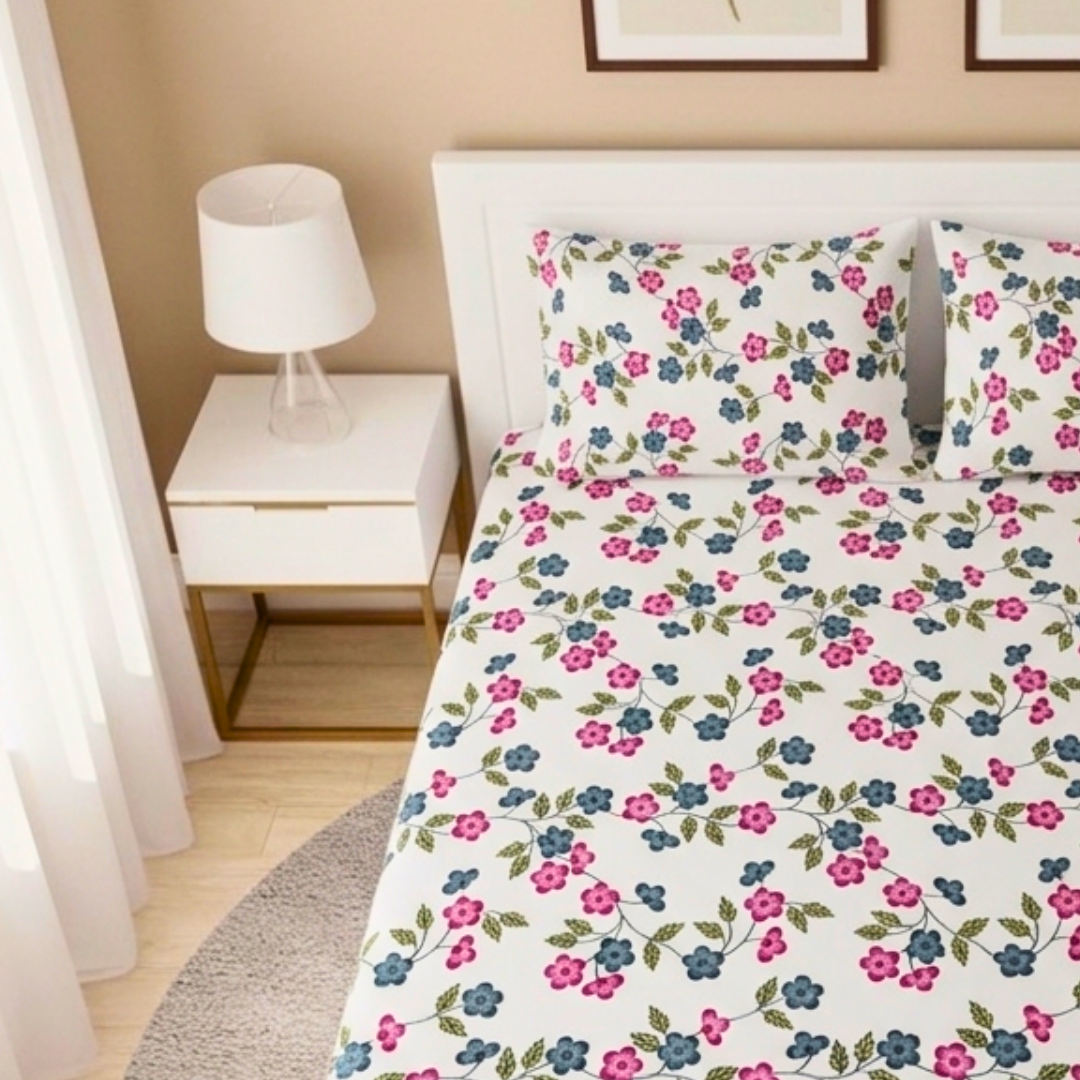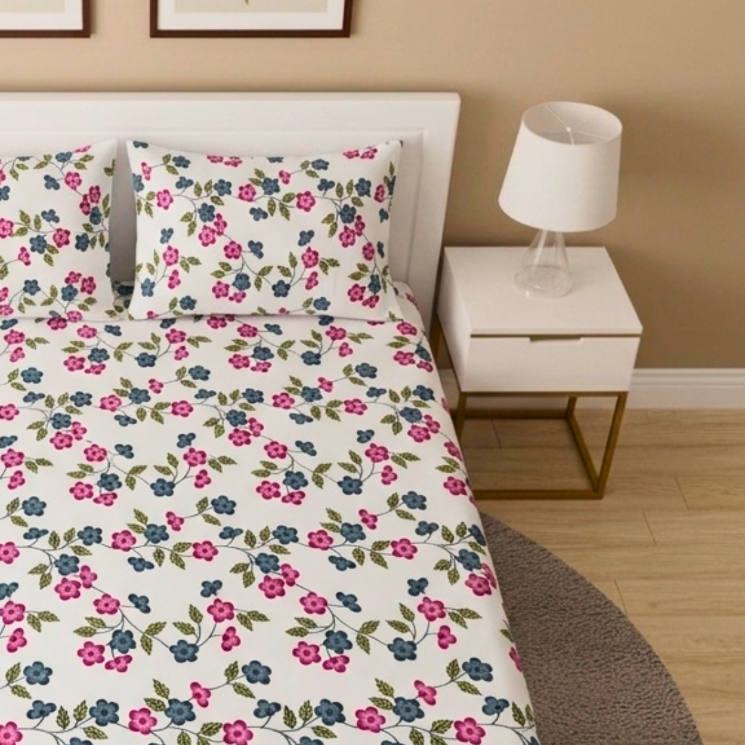 Polycot Double Bed Bedsheet with 2 Pillow Covers - Pink FloralPolycot Double Bed Bedsheet with 2 Pillow Covers – Pink Floral