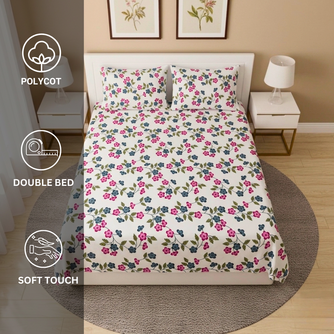 Polycot Double Bed Bedsheet with 2 Pillow Covers – Pink Floral